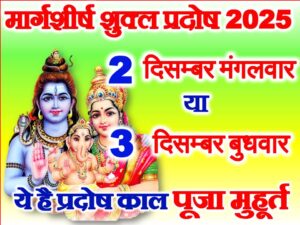 - साल 2025 मार्गशीर्ष माह का शुक्ल प्रदोष व्रत 2 दिसम्बर मंगलवार को रखा जाएगा|