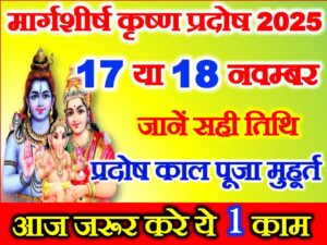 - साल 2025 मार्गशीर्ष माह का कृष्ण प्रदोष व्रत 17 नवम्बर सोमवार को रखा जाएगा|