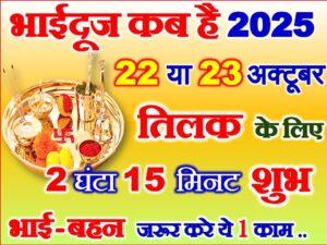 - साल 2025 में भाईदूज का पर्व 23 अक्टूबर गुरुवार को मनाया जायेगा|