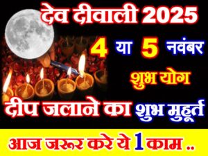 Dev Diwali Kab Hai 2025 Mein शास्त्रों में देव दिवाली का खास महत्व है. यह पर्व दीपावली के ठीक 15 दिन बाद मनाया जाता है। पंचांग के अनुसार कार्तिक माह के शुक्ल पक्ष की पूर्णिमा तिथि को देव दीपावली मनाई जाती हैं. इस दिन प्रदोष काल में दीप जलाकर माँ लक्ष्मी और भगवान सत्यनरायन जी की पूजा से मनोकामना पूरी होती है. आइए जानते हैं साल 2025 में देव दीपावली कब है, दीप जलाने का शुभ मुहूर्त, शुभ योग और इस दिन किये जाने वाले उपाय क्या है|