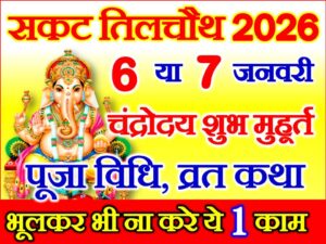 Sakat Til Chauth 2026 Date Time शास्त्रों में माघ के महीने को बेहद पवित्र माना गया है। पंचांग के अनुसार माघ माह के कृष्ण पक्ष की चतुर्थी तिथि को सकट चौथ का व्रत किया जाता है. इसे तिलकुटा, तिलचौथ, माघी चौथ अन्य कई नामों से जाना जाता है. इस दिन भगवान गणेश जी के साथ-साथ भगवान शिव, माता पार्वती, कार्तिकेय, और चंद्रदेव की पूजा का विधान है। यह व्रत संतान प्राप्ति और संतान के सुखी जीवन की कामना से किया जाता है आइये जानते है साल 2026 में सकट चौथ व्रत की सही तारीख, शुभ मुहूर्त, चन्द्रोदय का समय, पूजा विधि, व्रत कथा और नियम क्या है|