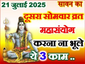 Sawan Dusra Somwar Puja Vidhi पंचांग के अनुसार इस बार साल 2025 में सावन का महीना 11 जुलाई से 9 अगस्त तक चलने वाला है.  इस बार सावन का दूसरा सोमवार व्रत 21 जुलाई को रखा जायेगा. जो बेहद खास होगा क्योंकि सावन के दूसरे सोमवार व्रत के दिन शुभ योगो का निर्माण हो रहा है. इस दिन भगवन शिव की पूजा से जातक की मनोकामना पूरो होने के योग बनेंगे.आइये जानते है सावन के दूसरे सोमवार पर बनने वाले शुभ योग क्या है, शुभ मुहूर्त, पूजा विधि और उपाय क्या है|